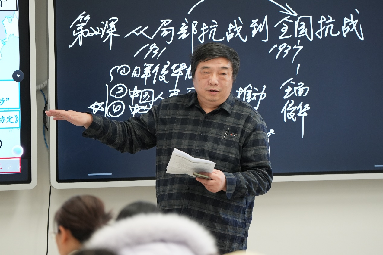 在南楼剧场,聂宏升老师分享了初中课例《中国工农红军长征与遵义会议》,以设计的问题链入手,逐步追问学生“为什么长征、为什么召开遵义会议、为什么遵义会议是生死攸关的转折点、为什么长征路线最终选择北上”几个重要问题。郑林教授、丁丁教研员进行了评课。